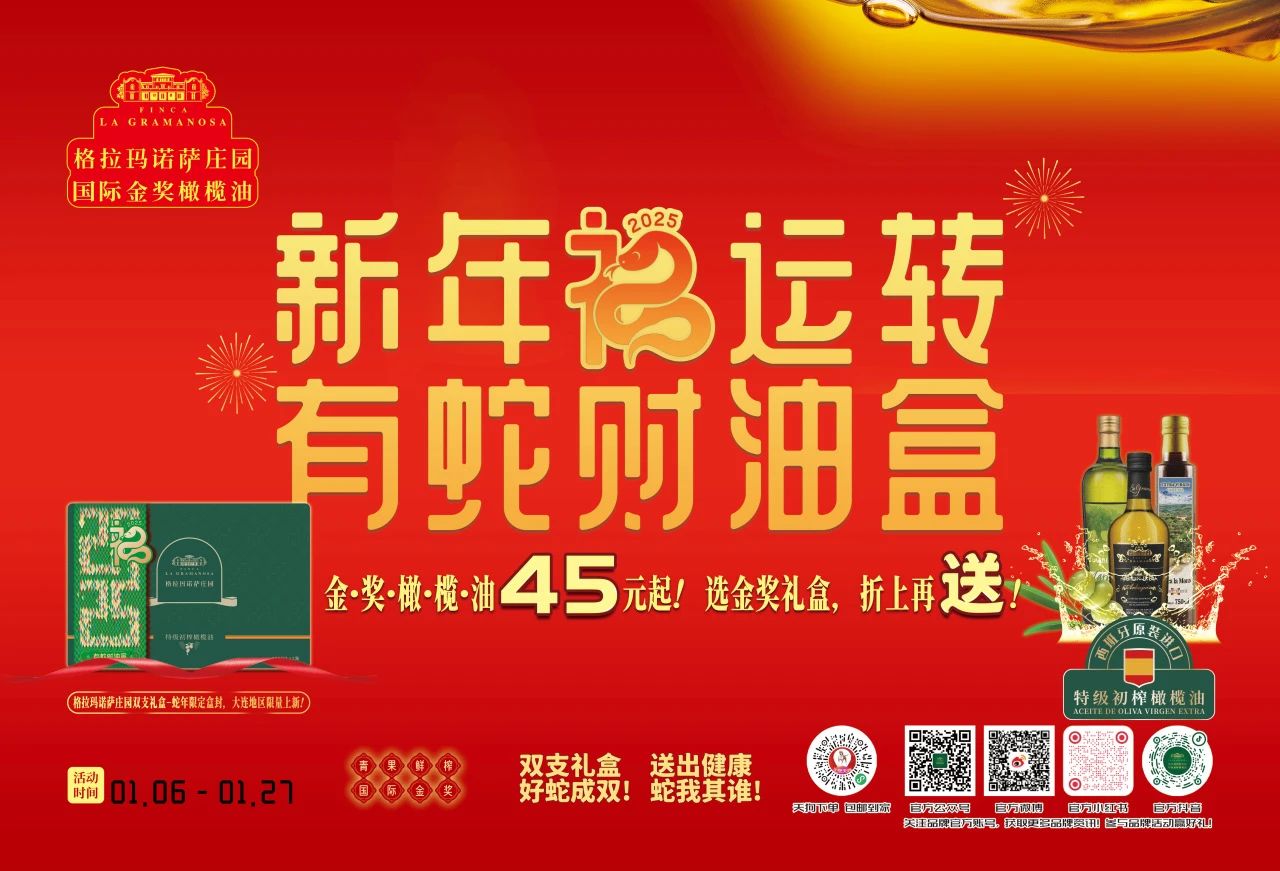 新岁序开,好“巳”发生。1月27日前,连获多项国际金奖的西班牙格拉玛诺萨庄园特级初榨橄榄油为新年“加油”。购格拉玛诺萨庄园系列礼盒折上再送单瓶装,享惊喜盛惠,为健康“加氛”。